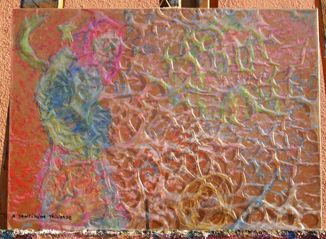 plástico autocolante sobre pastel de óleo sobre placa de madeira