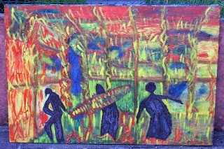 óleo sobre cartão canelado
